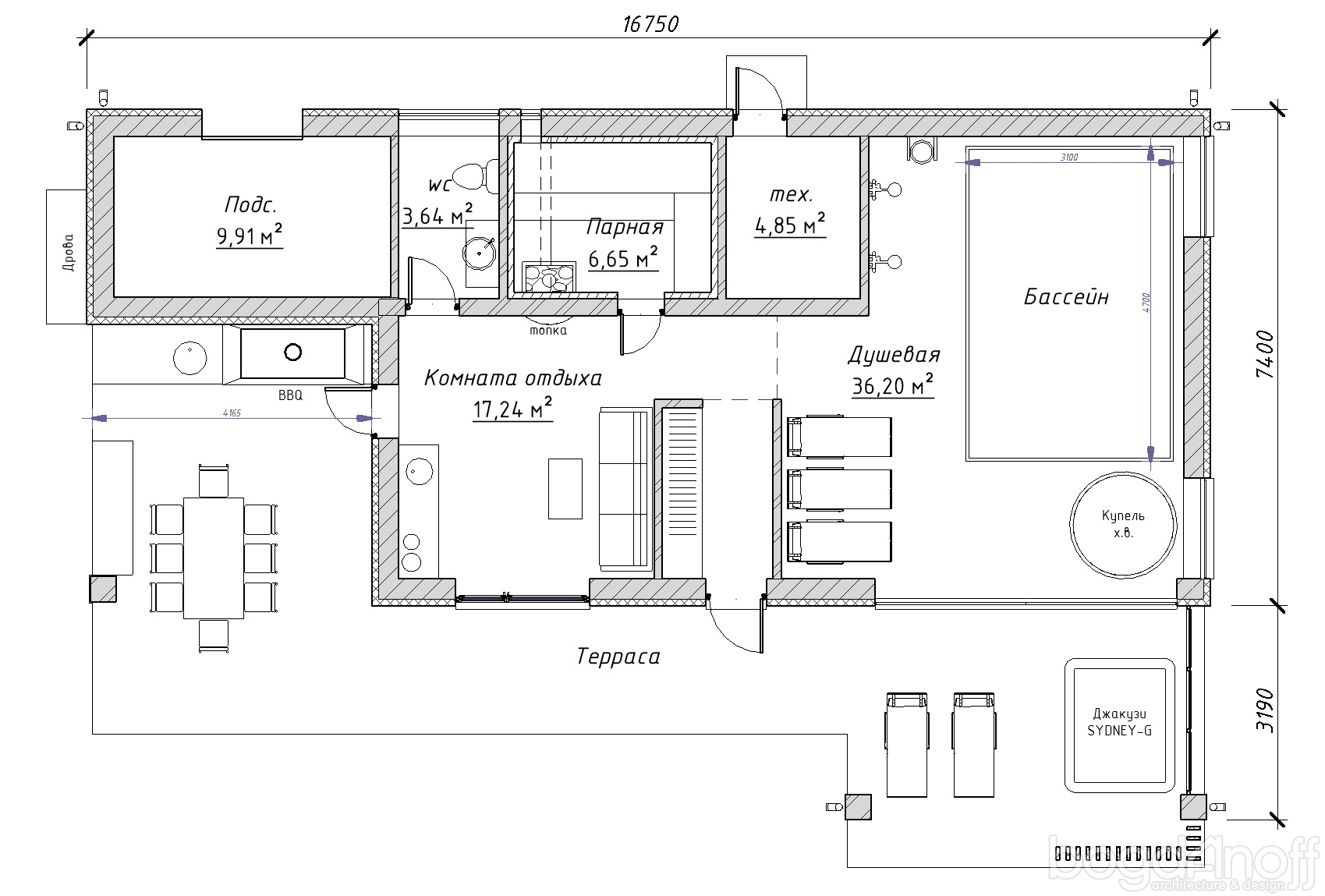 Представляем проект комфортабельной бани площадью 99 квадратных метра, идеально подходящей для полноценного отдыха.
