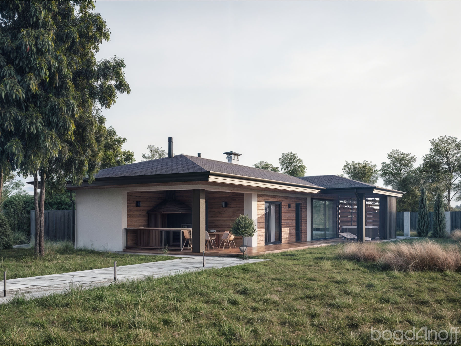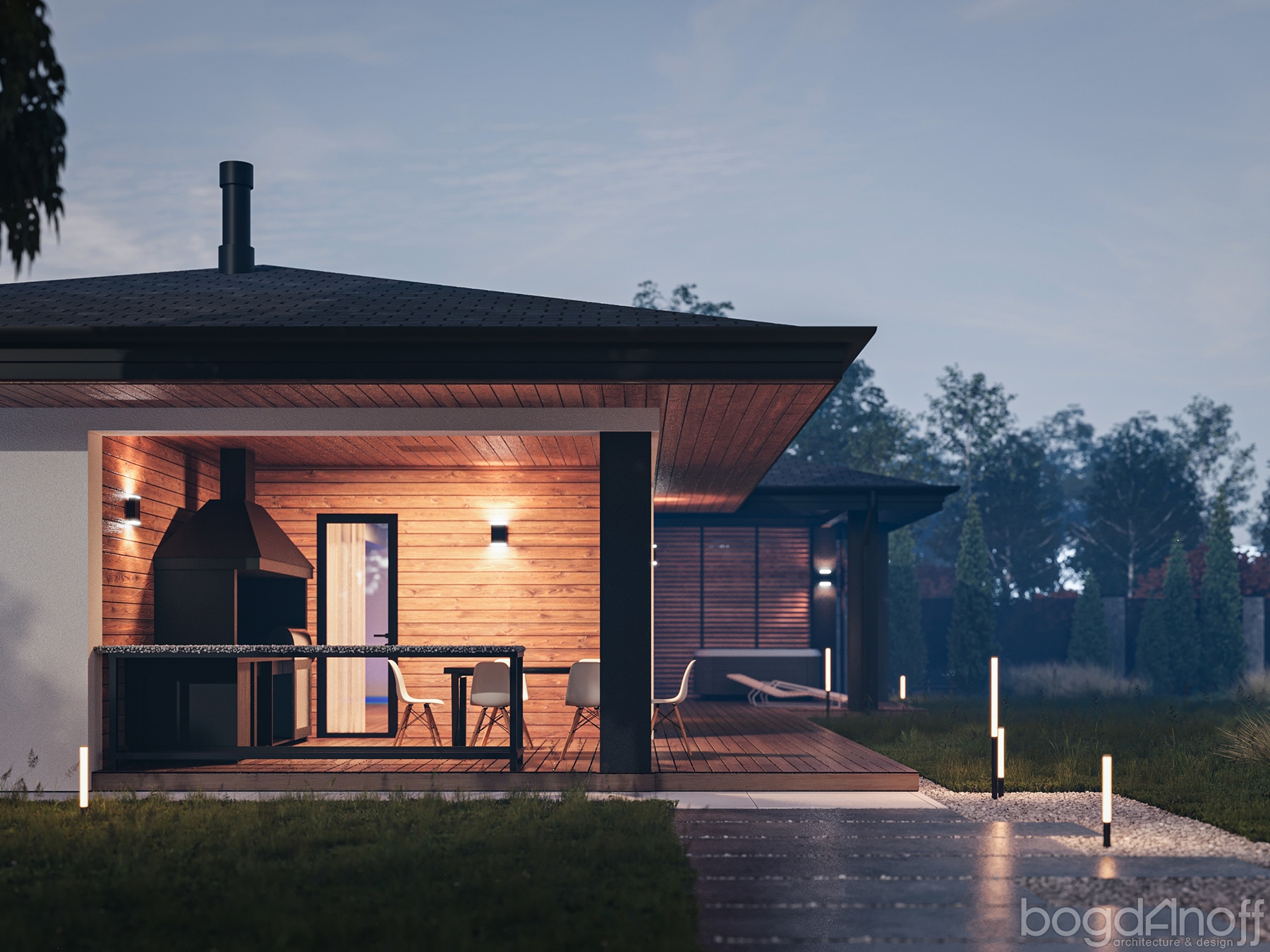 Центром релаксации станет просторная терраса с джакузи и оборудованной зоной барбекю. Внутри вас ждет уютная комната отдыха для общения.